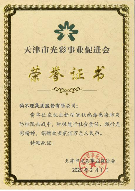 2020年2月,為防控新型冠狀病毒肺炎疫情,狗不理集團(tuán)第一時(shí)間向天津市光彩事業(yè)促進(jìn)會(huì)捐款