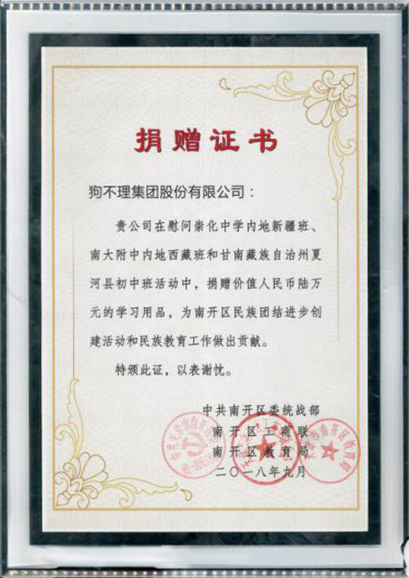 2018年9月, 狗不理集團(tuán)捐贈(zèng)南開大學(xué)附屬中學(xué)、天津市崇化中學(xué)在校西藏困難學(xué)生